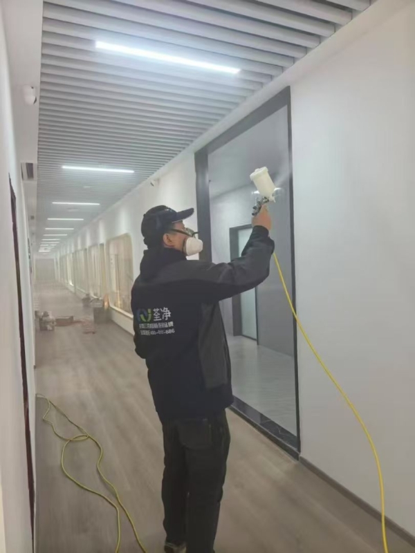 | 序号:3 | 治理区域:光触媒催化处理 | 操作流程:1.墙面、天花板均匀喷涂光触媒(0.2kg/㎡);2.紫外线灯照射激活(30分钟);3.通风配合 | 质量标准:光触媒涂层均匀,甲醛分解率≥90%,形成长效催化层 | 验收方式:客户检查涂层状态,签署《光触媒处理确认单》 |